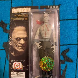The first one is a variant of Frankenstein's monster--shirtless! Admittedly, I'm not sure that this is from a specific movie, but when I spotted it online, I knew I had to have it. As the creator of a Frankenstein-inspired character who is often shirtless himself, I can appreciate the similarities! This monster also features stitches on his chest and his hands are bound by a chain. I really like these Mego Universal Monsters, but this one is probably my favorite so far!